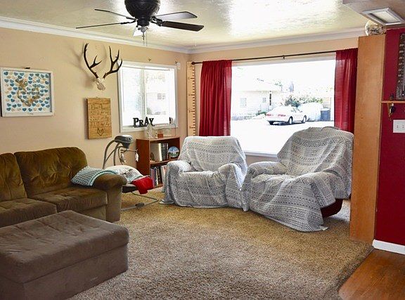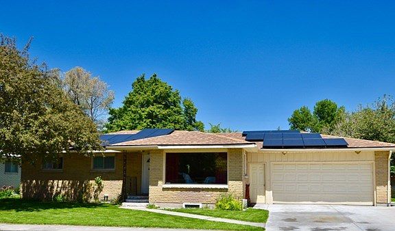 Welcome home! This beautiful all brick home features 5 bedrooms, 2 baths, a large main floor family room with crown molding and a bright sunny kitchen. The master bedroom even has its own private master bath with beautiful tiled shower! Some of the added amenities include newer dishwasher, solar panels, crown molding, large storage room in basement, an over sized two car garage plus an attached workshop/extra storage area, a large, mature, fenced yard with auto sprinkler system, newer roof, gas forced furnace, and no maintenance exterior.