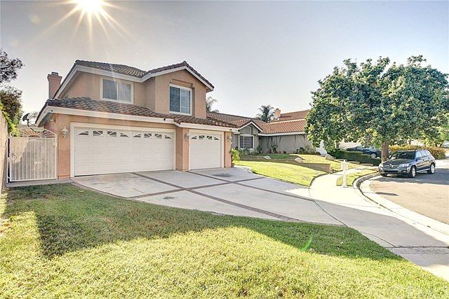 Absolutely gorgeous, 2 storey, turnkey home situated on a cul-de-sac. Step into a spacious and open living room/dining room with high ceilings and lots of light, great for entertaining your guests or get togethers. Or you can take the party out by opening the sliding door leading to the backyard to a covered patio and an outdoor wet bar with tiki hut cover and tile counter tops. Better yet, relax in your family room with a tile surround fireplace or enjoy the view of the fully landscaped and manicured backyard, while having breakfast or cooking in your upgraded kitchen with stainless steel appliances, white cabinets, granite counter tops, tile back splash, center island, recessed lighting, laminate wood flooring and eating area. Step out, from family room, into your covered patio, great for relaxing or having barbecues at your outdoor barbecue. The upper landing of this beautiful home has 2 bathrooms and four spacious bedrooms with ceilings fans, decorative paint and laminate wood flooring. The main suite is spacious and has own bathroom, which has new vinyl flooring, dual vanity with tile counter tops, tiled shower with glass door and sunken bathtub. Other amenities are indoor laundry room with own sink, half bath downstairs, 3 car attached garage, newer air conditioner, RV parking, coat and linen closets and much more. Centrally located, close to schools, shops, Costco and freeways.