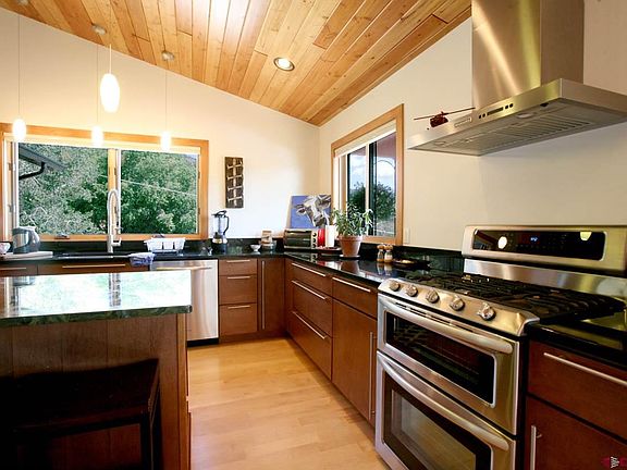 Enjoy in-town convenience in a modern home! The open tread stairs, unique granite counters, vessel sinks and eclectic light fixtures elevate the character and quality of this 3 bedroom/ 2.5 bath home. This home offers main-level living, with a spacious master suite, open kitchen and beautiful separate dining room. An additional space was added in 2015, which is a great office, guest room or secondary living room. The attached 2 car garage accommodates cars and gear! With a fenced backyard, dogs and kids are safe and there is minimal maintenance. Enjoy morning coffee or evening dinner on the deck with great views to the east. If you are looking to be in-town without having to remodel a home- look no further!