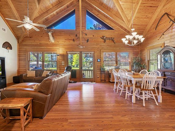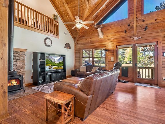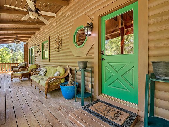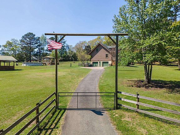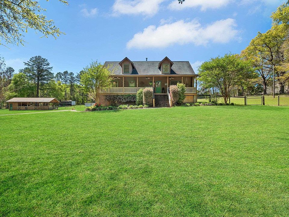 Stunning cypress log home on 2.66 acres. This immaculately maintained home boasts breathtaking vaulted ceilings with exposed cypress and natural light throughout. Sprawling property includes a above ground pool; covered spa/hot tub; covered barn perfect for storage or horses, a pole barn, and plenty of space for gardens and more - it's a landscaper's dream. In addition to the open living space and 4BD/4BA, there is a large lower-level flex space perfect for a guest suite, a bonus room, gym, or office. 2014 roof, updated kitchen with granite countertops, SS appliances, center island, bar & pantry. The home includes over 800' of covered porches allowing you to enjoy the quiet, private setting. New HVAC 2021; Roof 2014; Pool 2021; appliances 2022; Fee $175 annually for road maintenance - no HOA.