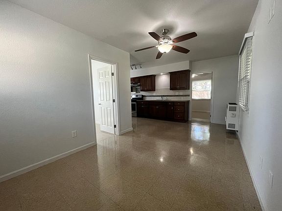Welcome to 370 West Nicolet Street, a darling two bedroom home located in Banning, CA. This 630 square foot, 2 bedroom 1 bath residence is nestled in the heart of the city and offers plenty of privacy with a privately fenced yard and off-street parking for added convenience. The interior greets you with clean, natural light thanks to the dual glazed windows, plenty of windows throughout the space. To complete this cozy atmosphere are newly installed blinds that add warmth and comfort. The walls have been freshly painted creating an inviting living space for all who enter! This house boasts great storage options in both bedrooms as well as easy access to freeways and shopping centers nearby perfect for those looking for city amenities within reach while still enjoying the peace of suburban life. You'll find many opportunities to relax outdoors too; take advantage of the covered porch or shared large backyard when it's time unwind after a long day. Plus there's even more fun nearby with easy access to Morongo Casino and outlet stores! This charming cottage presents an excellent opportunity for anyone seeking quality living close by. Don't miss out! Owner pays for water and landscape maintenance. Tenant responsible for power, gas, internet. Small pet may be acceptable dependent upon breed. No smoking allowed. Off street parking available. 1 year lease.