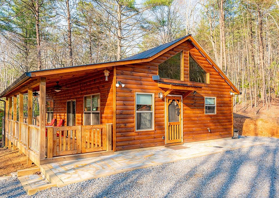 Captivating, 2-year-old cabin nestled in serene seclusion, boasting a low-maintenance yard for effortless upkeep. This charming abode offers 2 bedrooms, 2 baths, and 864 square feet of meticulously designed living space, creating an illusion of spaciousness. Enjoy the ease of single-level living in a private, wooded oasis reminiscent of a tranquil park setting, situated at a lofty elevation of 1800 feet above sea level.  Step inside to discover a haven of modern comforts, featuring updates such as high-speed fiber-optic internet service, rustic hand-hewn log siding, and a durable metal roof. Relax on the covered front porch or unwind on the open wrap-around deck, all while relishing the peaceful ambiance. With a versatile garage/workshop/she-shed option, tailored to your preference, and hardscaped landscaping eliminating the need for regular mowing, convenience meets luxury seamlessly.  Indoors, be greeted by tongue-and-groove wood ceilings, bespoke pine cabinets, and elegant granite countertops, complemented by a cozy stacked stone gas fireplace for chilly evenings. The fully equipped kitchen boasts Samsung stainless appliances, while the laundry area includes a stackable full-size LG washer/dryer for added convenience. Custom Bali window treatments adorn each window and slider, enhancing both style and functionality.  Explore nearby attractions with ease, as this idyllic retreat offers easy access to five TVA lakes for recreational pursuits like fishing and boating. Additionally, major cities such as Atlanta, Knoxville, and Chattanooga are just a scenic 2-hour drive away, while the excitement of Harrah's Cherokee Casino awaits a mere 20 minutes from your doorstep. Experience the epitome of mountain living with this exceptional property.
