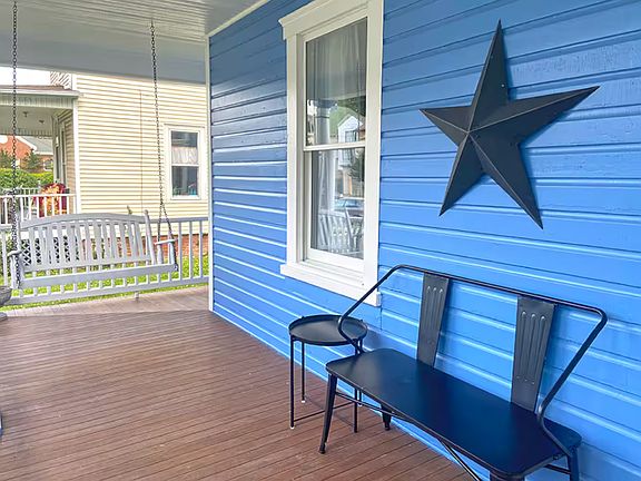Front porch: Swing and small bench overlooking the front yard. There maybe the option for occasional use of the backyard and firepit. The backyard is generally reserved for the upstairs tenant use.