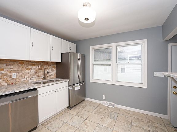 Fantastic North Colonie Ranch with modern finishes, new kitchen w/breakfast bar, granite counters, custom back splash, stainless steel appliances, new bathrooms, new flooring throughout,recessed lighting, new furnace,new HW Tank, large fenced in back yard.