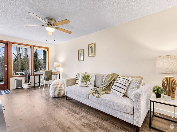 Lake Whatcom view condo with ground level access & a spacious deck that walks out to trails leading to Scudder Pond & Whatcom Falls park. This unit, updated with LVP flooring, is an affordable and easy way to enjoy the PNW lifestyle with amenities including clubhouse w/fitness center, guest rooms, laundry, 200' private beach on the lake with kayak storage and cabana. Come see this sweet 1 bedroom unit with amazing Lake Whatcom access!