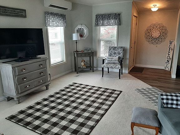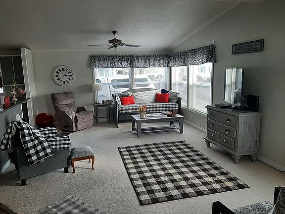 This lovely Manufactured Home is well positioned in the desirable 55+ Camelot Village Community. Great location near stores and restaurants. This home features a open floor plan with a kitchen, Living room and dining room combination. Great for entertaining and family get togethers. Nice size Laundry/Mud room. Vaulted ceilings,sky lights and laminate flooring all through this home. A Master Suite with walk-in closet and large bathroom. One bedroom is used as an office, but could easily be a 3rd bedroom if needed. Guest bedroom also has walk-in closest. This home has a wonderful feature of windows through out the home that are triple paned. A Ductless heating and air system. Well maintained home and low maintenance yards.