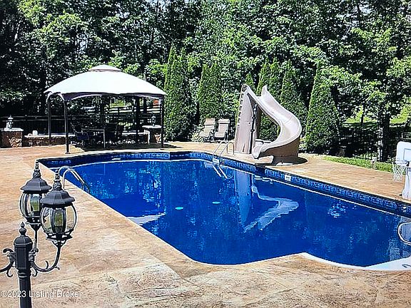 slide, stocked Pool House, and large stamped concrete pool deck. Perfect for entertaining!
