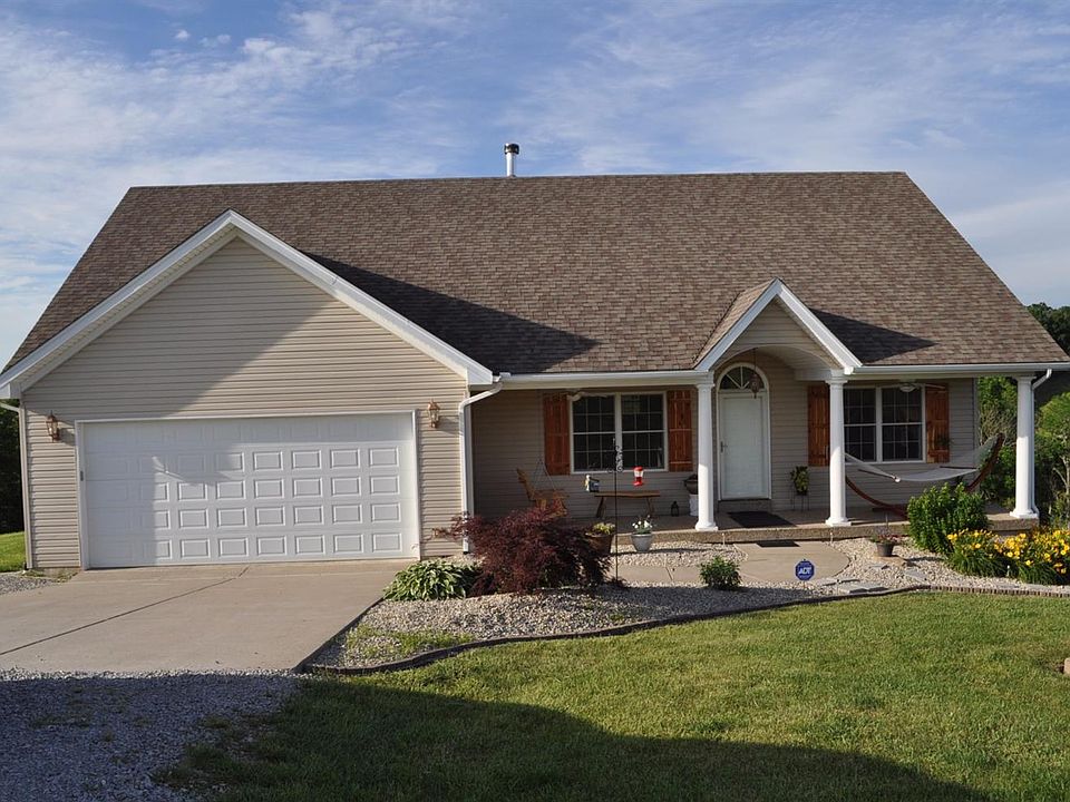 Secluded home on 9 acres. This home features 3 bdrms, 2 baths, eat-in kitchen, great room with free standing wood burning stove, split bedroom design, full unfinished basement with roughed in bath, partially fenced, 2 car garage on main level.