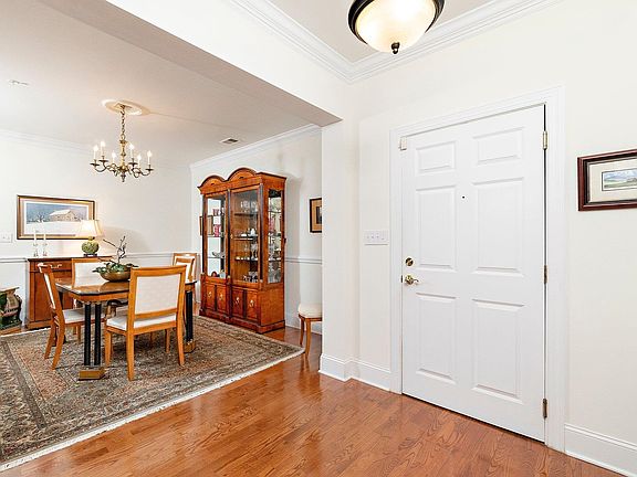 Elegant split bedroom plan at Olde Raleigh Commons features large living area opening to formal dining with hardwoods throughout with carpet in the bedrooms. Recently painted in neutral alabaster. Living has gas log fireplace, built-ins, hardwoods, wall of transomed windows/door to the covered porch. Spacious dining with chair rail. Office/flex space with French doors just off the foyer and living area. Kitchen with granite, newer stainless, tons of cabinets, pantry. Breakfast area with easy porch access and view of landscaped grounds. Master has window alcove, large walk-in, linen closet, new carpet. Master bath has double vanity, walk-in shower, walk-in tub. Laundry room with cabinet storage. Lovely covered porch. Garage parking, space #28. Garage level storage room. Secure elevator entrance. Perfect location near shopping, restaurants, hospital, I-40, 440.