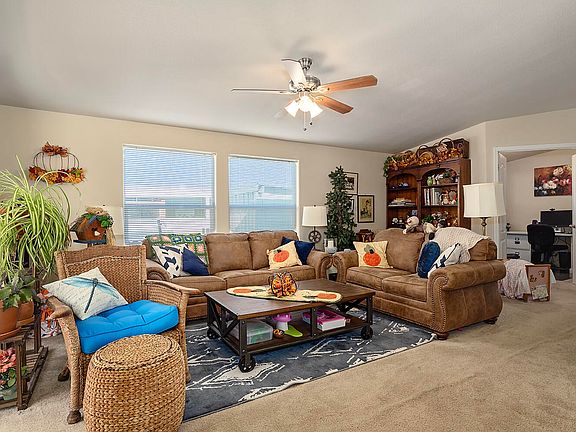Discover your ideal home in the Serene 55+ community of Blue Spruce Mobile Estates just outside of Jacksonville. This well maintained 2015 manufactured home offers a spacious living area with plenty of natural light. The open floor plan has the kitchen breakfast bar and dining area to be a part of the family room. There is flexible space to suit your needs with the 2 bedrooms plus a home office right off the living room. The primary suite features a generous walk-in closet and a dual vanity with a linen closet for additional storage. The dedicated laundry room also has plenty of storage options. Enjoy your own private deck outside perfect for relaxing or hosting a gathering with friends and family. Your car is protected from the elements with the carport while having an additional storage shed. Whether downsizing or seeking a 2nd home. This is a must see.