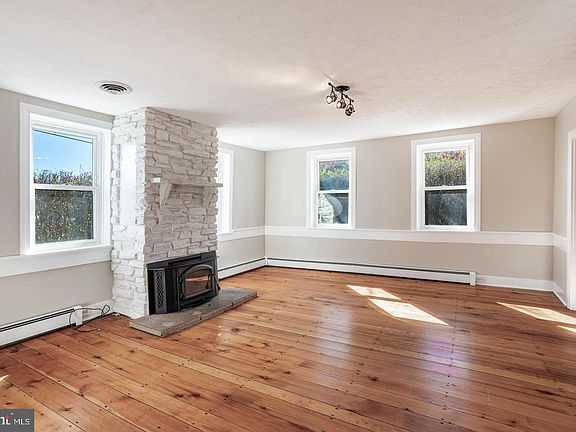 Welcome to your countryside retreat! This stunning 5-bedroom, 3-bath farmhouse sits on 6.24 flat acres, offering breathtaking pastoral views. Enjoy the tranquility of rural living while being just minutes away from shopping and dining. This home has been meticulously updated over the years, with highlights including a freshly painted interior (2024), roof resealed in 2020 (5-year warranty), new hot water heater (2015), and replaced septic system (2015). The well pump was updated in 2019, and a spacious main-level bedroom with en-suite bath was added in 2017 (permitted). The kitchen was remodeled in 2015, along with the en-suite primary bath. Hardwood floors were refinished in 2019, and the A/C condenser was replaced in 2017. Also has SOLAR PANELS THAT WILL SAVE YOU MONEY! The current bill is $19 dollars for this month. They range from 7 dollars to 20 dollars depending on the time of year. Step inside to discover gleaming hardwood floors, custom woodwork, and modern amenities like stainless steel appliances and recessed lighting. The kitchen, complete with an adjacent breakfast room, is sure to become the heart of the home, featuring beautiful countertops, cabinets, a large island, farmhouse sink, and a cozy gas fireplace. The main level boasts a spacious bedroom suite with an en-suite bath—ideal for an entry-level owner’s suite or in-law suite. Upstairs, you’ll find four generously sized bedrooms, including a primary suite with a walk-in closet and en-suite bath that features a soaking tub and glass-enclosed shower. The roomy attic offers additional potential for living space. Outside, relax on one of the three covered porches and take in the serene views of the tree-lined acres, perfect for gardens, horses, or chickens. A detached garage/barn provides space for two cars and ample storage and workspace. This exceptional property won't last long—schedule your tour today and make this charming farmhouse your new home!