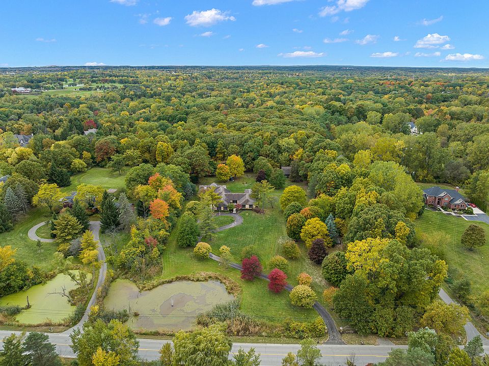 A rare find! Solid brick, custom ranch with over 4,000 SQ FT plus an additional 1,700 SQ FT attached indoor pool and recreational room. Approximately 5 acres with mature trees and livestock/storage barn. This exquisite home is made for entertaining and welcomes you through wrought iron gates up a rambling driveway past your own spring fed pond to your personal oasis! The huge entry hall with Brazilian Cherry floors goes forever, connecting you to all living areas and bedroom wing. Extra-large kitchen with granite countertops, tons of cabinetry with pull out drawers, copper sink, integrated refrigerator, and large island flows into a cozy family room with fieldstone fireplace and wet bar, then on to the pool area with Gunite pool and hot tub. Feels like a resort floating under all the skylights. Dining room/billiard room connects to living room with gas fireplace off entry hall and all have dentil, crown molding. 2 half bathrooms, 2 full baths. The master suite is a sanctuary with large master bath, walk in closet, its own private deck and french doors leading to common deck. Library off entry. Partially finished basement. Fresh, neutral paint inside and out, including barn. New driveway 2022 ($35,000) New roof and sky light install ($65,000). Furnaces new in 2017 and air-conditioners replaced in 2021. Hot water tanks replaced in 2014 and 2017. Ride your horse on the Paint Creek Trail, hit the cider mills, or hike Bear Creek Park. Award winning Rochester schools.