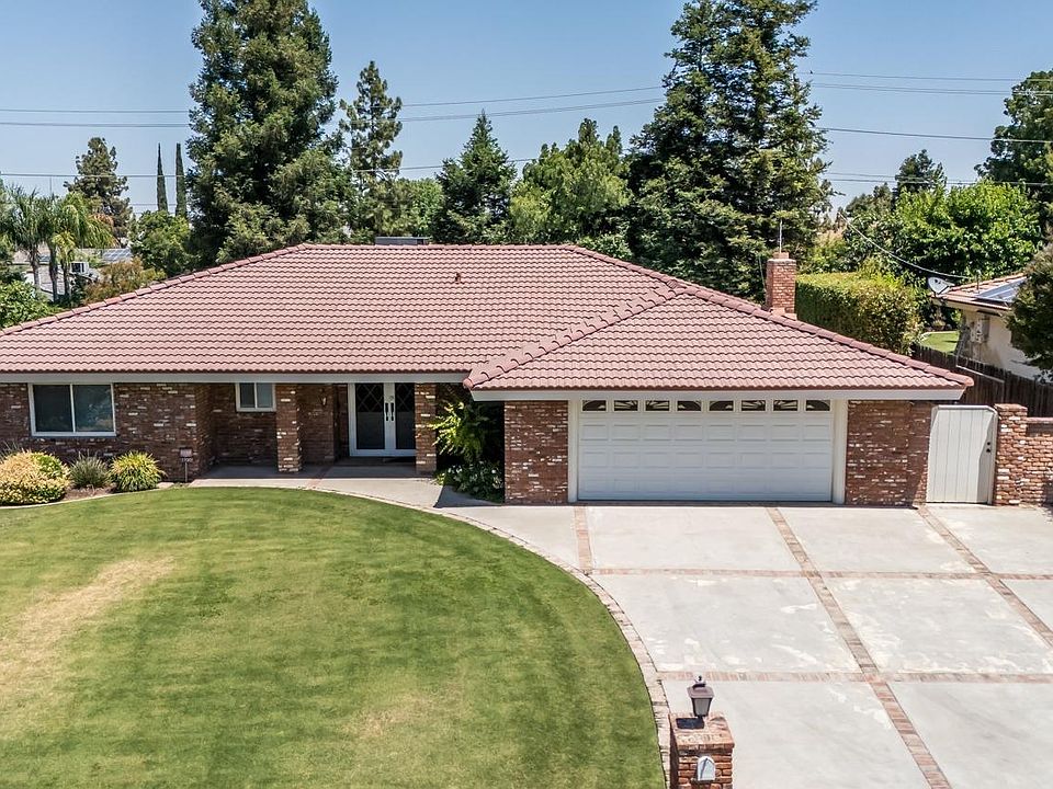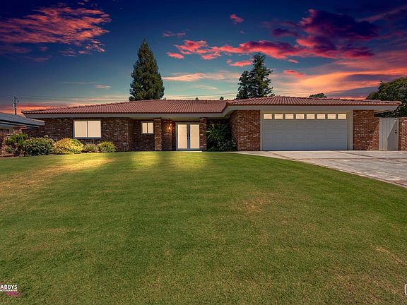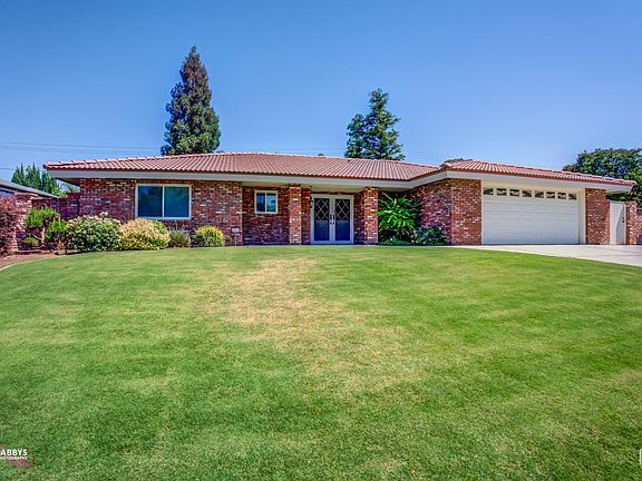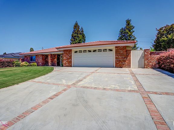 Classic home in Northeast Bakersfield near Bakersfield College & Panorama Bluffs. Traditional beauty outside & inside. You will be greeted by a lovely bricked wall, then into the spacious formal living room w/gorgeous wall to wall brick w/fireplace & built-in bookshelves, wood paneling, & an oversized sliding glass door to the beautiful backyard oasis. Great sized kitchen offers counter top bar, updated black appliances, double ovens, microwave, and dining area w/bricked planter. Primary bedroom has lovely classic wallpaper w/slider to backyard & plantation shutters, primary bath has an open concept with granite counter top & white cabinetry & a full wall of mirrors. The office has complete built-in bookshelves, & wooden planation shutter. Guest bdrm has double closets, & bay window seating. Guest bath has granite counters, custom lighting & mirror, tile flooring. Hallway provides tons of storage cabinets. Lush backyard w/swimming pool, spa, firepit & X-long patio. Amenities attached.