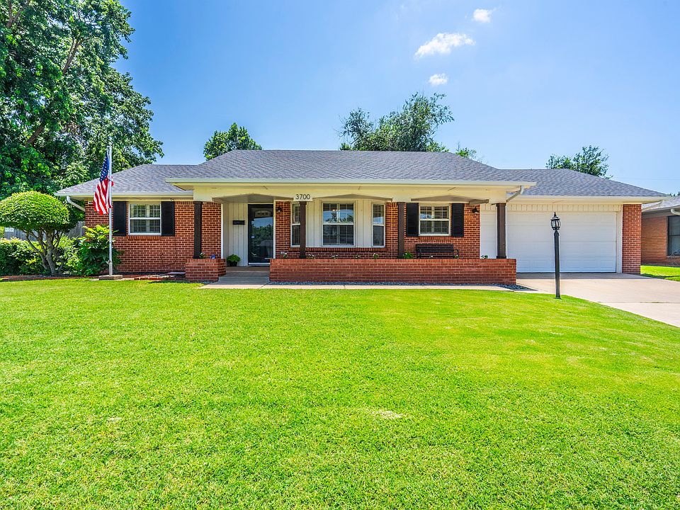 Adorable 60's Ranch in Edgewater. Tastefully updated w/the perfect mix of historical charm & current design trends. Light color palette, cedar beams, designer fixtures & hardware & much more (see supplements). Kitchen reno incl. granite countertops, subway tile backsplash & new appliances. A portion of the kitchen wall was removed opening up the floorplan so there is a "great room" as well as an additional living or dining area. Brand new carpet in all bedrooms and hallway. Master bed has ensuite bath & 2 closets. The backyard is spacious and has a large patio area incl. firepit and is accessible thru French Doors that can be opened up on beautiful summer evenings to create an even larger entertaining area. LOCATION!!!! 2 miles on Hefner trails to Hefner Pointe restaurants, 1 mile to Stars & Stripes park. 15 min to downtown, 5 min to Penn Square, 10 min to Chisolm Creek. Oversized 2 car garage. Everything about this house & location is PERFECT. Just saying, you probably better hurry.