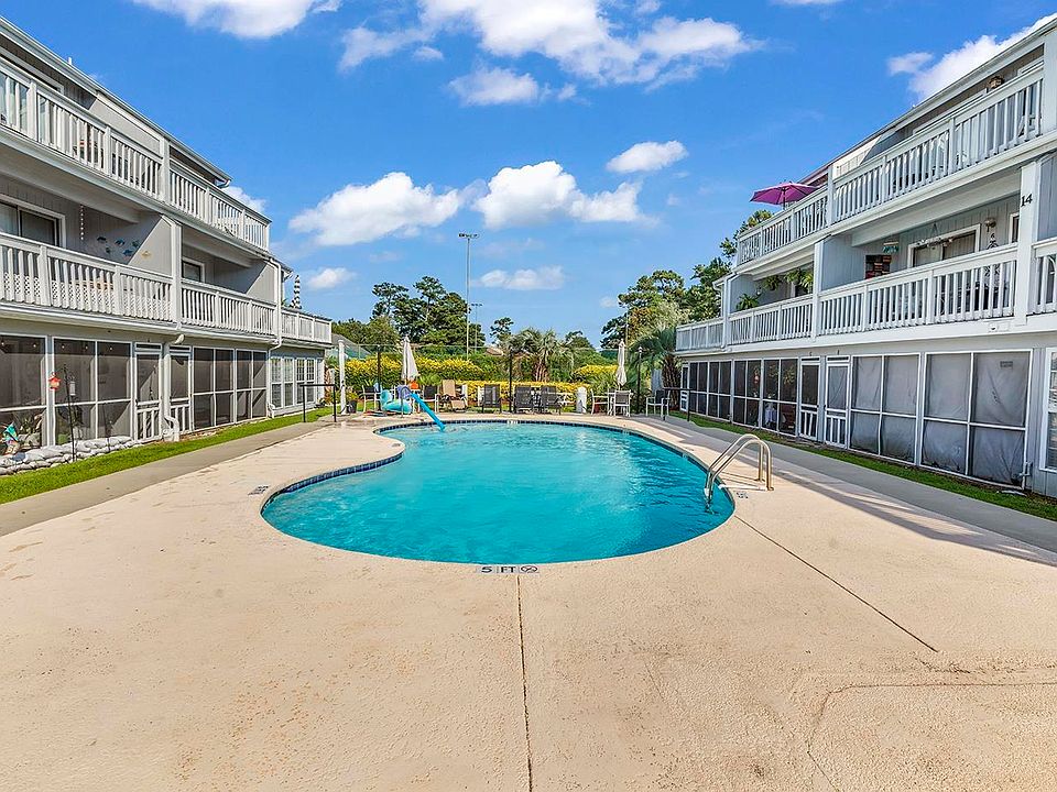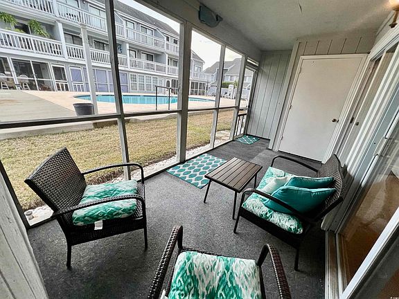 LITTLE RIVER, SC~ FURNISHED CONDO For Sale with NO Steps (first floor) and LOW HOA dues!! 1BR 1BA located in Golf Colony Unit 13-L. This lovely condo is minutes from Cherry Grove Beach and the Intra Coastal Waterway! It is across from a beautiful new hospital and just down the road from North Myrtle Beach where you can find just about any shopping + Entertainment you'd want (Publix, Home Goods, Kohls, tons of boutiques and restaurants galore). You are minutes from the NC beaches like Sunset Beach and just a few miles from Calabash. Golf Colony is centrally located for your enjoyment and convenient living!! This rare FIRST FLOOR condo has a beautiful view of the pool from the living room & kitchen area as well as the screen room. Enjoy your morning coffee while sitting on the cozy screen room! The doors and windows are updated! The kitchen offers updated cabinets and white appliances to match the cabinets. There is a cozy dining area and a spacious living room! The LR, Kitchen, and dining all overlook the beautiful pool! The large bedroom offers a good sized closet, updated paint, and a large window which is nice for natural light. The bathroom has a good sized vanity with cabinetry for storage! There is a spacious pantry and a storage area where the water heater is located. The screen porch overlooks the stunning POOL and lavish landscaping which is there for your enjoyment but without the hassle of cleaning and maintaining (this is done by the HOA). The laundry area has a stackable washer/dryer which will stay. The POOL was recently updated with concrete poured around exterior and hand rails added for easier access. The common area in the back is beautifully landscaped and maintained by the HOA. You are allowed to short term rent (3 day minimum) and long term rent. There are newer mailboxes that were recently installed for all the owners. If you are looking for an affordable way to live or stay at the beach you'll want to take a look at this awesome condo before it gets away!! Please contact your Realtor to get the rules/ regulations/ details of the HOA. ADDRESS: 3700 Golf Colony Dr. Unit 13-L (First building in Golf Colony on the LEFT) Little River, SC 29566