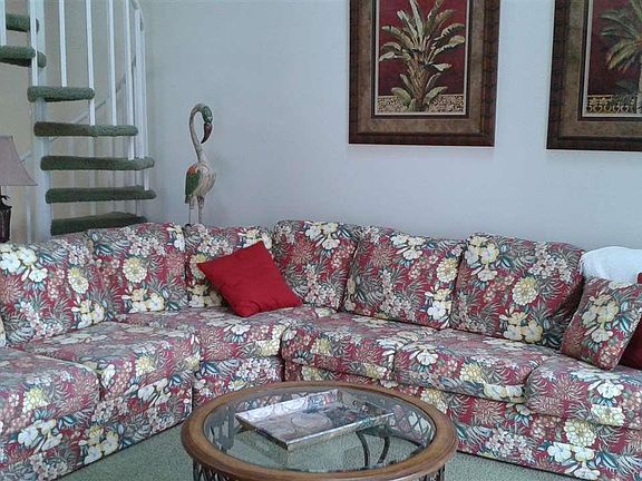 This End Condo is Fully Furnished and Move in Ready! Overlooking the pool on the 2nd Floor, it features like new carpeting with upgraded ceiling lights and fans. The open living room has vaulted ceiling and it adjoins the open kitchen and dining room. The Loft Bedroom has mirrored wall behind headboard with furnished bedroom suit and coordinating black and white bath. Appliances convey with Whirlpool Washer and Dryer. HVAC system was purchased in July of 2014. All measurements and square footage are approximate and not guaranteed. Buyer is responsible for verification.
