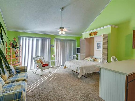Here is your affordable place at the beach! This cute efficiency has not been rented by current owners and has been well maintained. The vaulted ceilings make this unit feel extremely spacious. The great location is only minutes away from Cherry Grove Beach in North Myrtle Beach, a variety of golf courses, and many shopping and restaurant options. There is a great outdoor pool only shared by two buildings and an indoor pool for Golf Colony residences. HVAC and water heater were new in 2017. HVAC under warranty. Unit comes with all of the adorable furnishings, decor. and appliances including washer and dryer. Bed efficiently folds up into its own closet leaving a spacious living area. Couch also pulls out for additional guests.