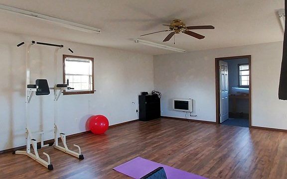 This property has its own driveway, features 3 separate buildings, a 40x80 building previously used as a cabinet shop with 1/2 bath, office & two 8 foot roll up doors, a 25x30 building used as a spray booth for auto body, a vinyl sided building built for a gift shop (no water in this building, but could be easily installed) all buildings have power. Building used as a cabinet shop had Phase III power at one time. Each building is equipped with gas heat. Property has 7-8 acres of fenced property with 2 ponds. There are 2 septic tanks on the property. There was a mobile home on the property previously. There is another slab beside the largest building where another building could easily be placed, currently being used as a pad for a camper. Property is fenced by surrounding property and only needs to be gated.