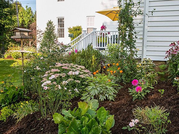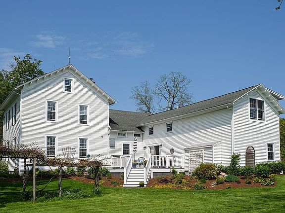 Bright, welcoming, simple, elegant and modern all describe this village edge farmhouse. Located less than a mile from the schools, shops and lake, this property is just shy of 2 acres and is beautifully situated & landscaped (with natural gas & public water). Either a mahogany front porch or an incredible mudroom welcomes you to spacious rooms filled with natural light. The chef's kitchen boasts stainless appliances, a Thermador Professional oven, a hand crafted & lit artisan pot rack which sits above a large island with a butcher block work space. It is open to an eating area & family room with a Vermont casting woodstove. The large living room adjacent to the dining room provides another wonderful gathering area. The full bathroom on the 1st floor could offer potential for a 1st floor bedroom suite. The 2nd floor includes a master suite, 2 full baths and 3 large bedrooms. The flat yard, back deck, 3 story barn all provide incredible entertaining opportunities. This is a special & unique property.