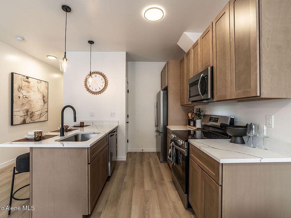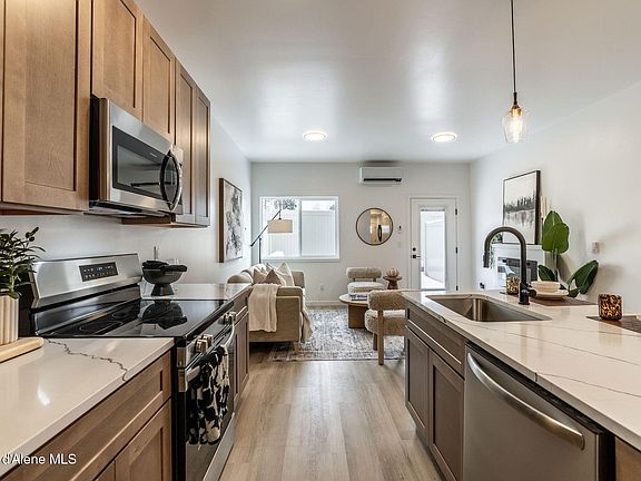 Welcome to Torrey Pines at The Village Condominiums, where modern living meets comfort in Coeur d'Alene's newest owner-occupied townhomes. This is the LAST AVAILABLE 2 bedroom, 2.5-bathroom unit feature with 1105 sqft of living space with an attached heated one-car garage. Fully equipped with stainless steel appliances, a washer and dryer, luxury vinyl plank flooring on the main level, quartz countertops, and quartz backsplash in the kitchen and bathrooms. Enjoy the ambiance of a fireplace, while the private fenced back patio offers a perfect space for relaxation or entertaining. Low-maintenance living is made easy with the HOA covering exterior maintenance, snow removal, and landscaping. Residents also enjoy exclusive access to The Village's top-tier amenities, including an indoor pool, spa, tennis/pickleball courts, and a clubhouse for social gatherings. Discover your dream home at Torrey Pines today!