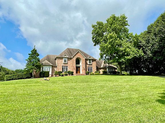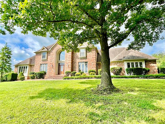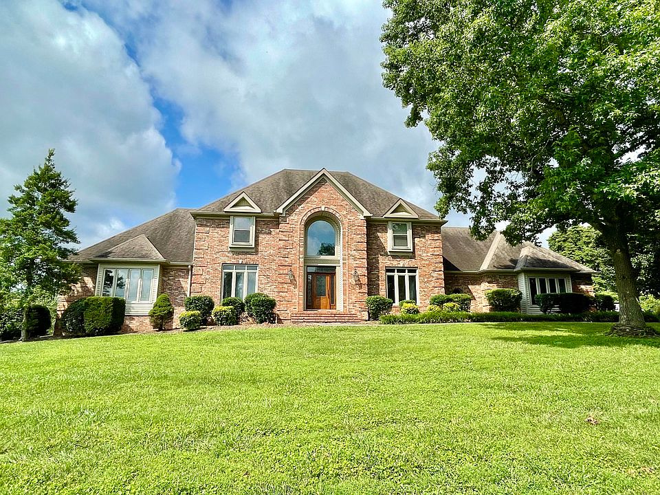 Executive custom built 2 story brick home that features 5 bedrooms, and 4 1/2 baths. Large master suite on the main floor, with a tile shower and jacuzzi tub, large great room with a wood burning fireplace, formal dining room, hardwood floors, plus a full partially finished basement with a bar, and a huge unfinished workout area with heat and air. This home features an oversized 3 car garage plus a huge 50 x 24 detached garage with a basement. Beautifully landscaped with a tree lined driveway into the property. All of this sitting on over 2 acres of land. Must see this home!