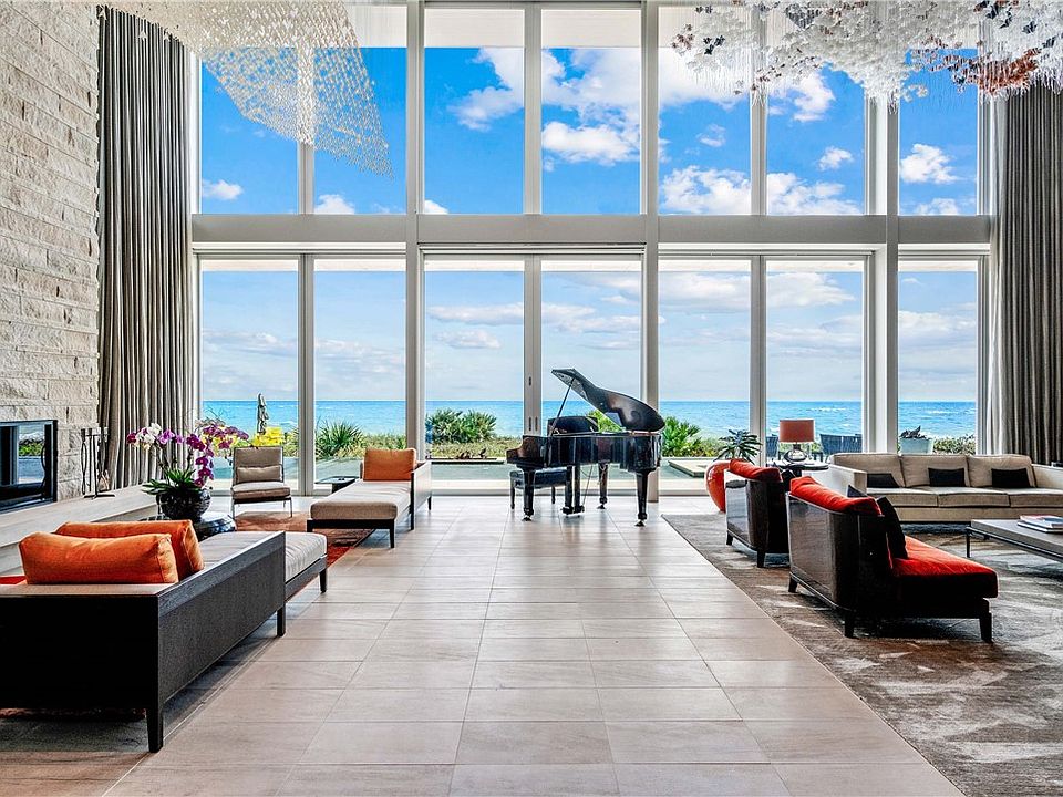 In the heart of Vero’s seaside downtown, this walled & gated oceanfront compound is secluded by the privacy of meticulously landscaped grounds. Featuring reinforced concrete & steel construction anchored by 255 pilings, plus floor-to-ceiling impact windows & doors for ultimate weather readiness & peace of mind. 8 beds, 12 baths, garage parking for 10 cars, & multiple kitchens. Effortlessly control the ambiance, comfort, security & entertainment w/ the Savant home automation system. Resort-like living w/ 2 pools, incl. an 80’ oceanfront infinity pool. Sep. 3-bed guest house.