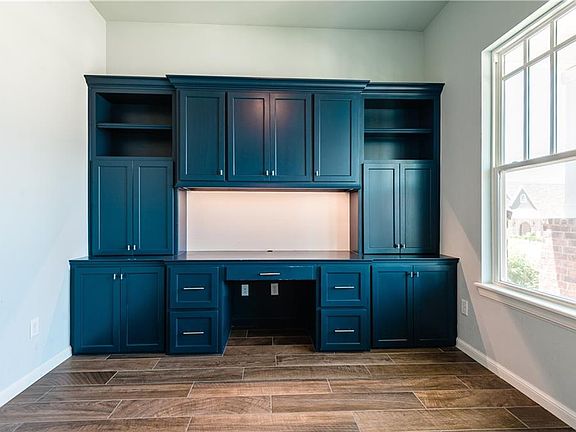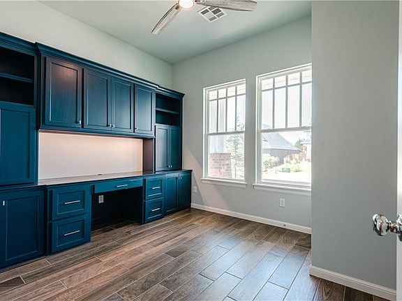 This adorable craftsman home in a cul-de-sac features 3 bedrooms (or 2 Bedrooms with a Study), 2 bathrooms, and for the organizer in the family, it has a planning center with built-ins. The kitchen is open to the dining and living room to make it easy for entertaining! You will love the shiplap wall across the living room accented against the stone fireplace. The laundry room is right off your private master suite with double vanity, oversized spa glass shower, and a large walk-in closet with make-up vanity built-in. You will love to entertain this Summer in this backyard complete with a gas firepit, stunning landscape, and storage outbuilding. Town Square is Edmond's historically inspired community built by McCaleb Homes. Town Square features a greenbelt, fishing pond with dock, a clubhouse, youth rec center, resort-style pool, state-of-the-art fitness center, playground, and a community garden. Come love where you live in Town Square!