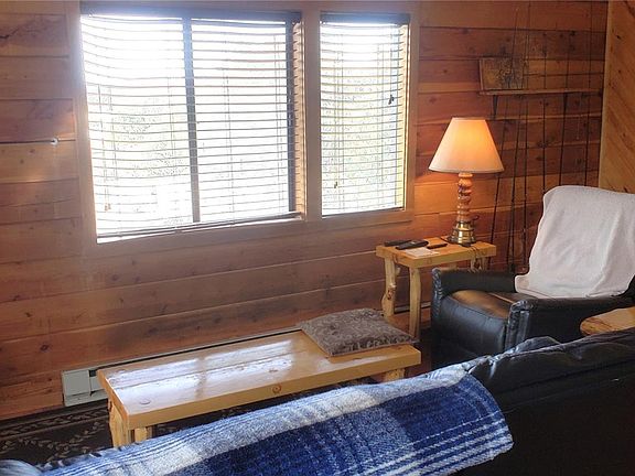 Owner Motivated! This 2 bed 1 and half bath home rest of 5 acres of beautiful Pinon Pine and juniper tree's. Very private and secluded. Only minutes to Mtn. Home Reservoir. Home rest on concrete stem wall, has D-Log , on private septic and private fresh water well(255 ft deep). The views from the home are breathtaking. 3/4 wrap deck on north with multiple picture windows to take it all in! Home is on electric baseboard heat and cozy cast iron wood stove, kitchen has stainless steel appliances all included. Home is mostly furnished, needs some work! Roof is shingle, also includes 2 car detached garage(on concrete slab with electric door openers and wood stove). The home needs stained/painted, sun room needs support as one corner is deteriorating, gutters need repair, interior needs painted. Home has good bones, just needs a little love! Price reduced, owner is motivated!