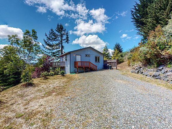 Amazing piece of Heaven on the outskirts of Fortuna. Everything you need on the top of a hill overlooking the city and mountains. Quality is the word when you consider the construction of this home and shop. From the 200amp main service panel and new water meter and connections to the new gutters and downspouts. The home is a quiet oasis with new decking that gives you a place to relax and enjoy the city lights. It also features a remodeled bathroom, new carpet and vinyl windows. Shop is a dream with 816sqft of space with epoxy flooring, 110/220 electrical, plumbing with washer/dryer and sink, LED lighting and overhead door with opener. Come view this rare property. Please do not drive up the driveway without your Realtor.