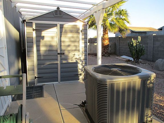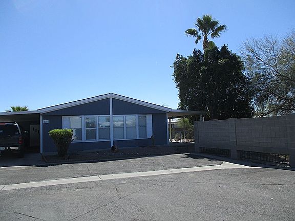 Beautiful 28 x 48 1334 sf, ground set double wide manufactured home, views of the Superstitions. Located in a sought after 55+ gated community. Furniture can be negotiated if you are wanting it furnished. Lot rent is 614.00 monthly plus utilities. *****Please CALL or TEXT 916-207-2796 ****** Private, 2/2, oversized double storage/shop & 8x10 shed. It sits on an extra large perimeter lot with lounge chairs, 8 piece patio set and stainless bbq/smoker grill. Master has a large walk-in closet & large linen closet. Kitchen has new counter tops with a bar & mini fridge. New beautiful wood flooring all through the home. Spacious open living area with lots of windows. Perfect North/South setting. Skylights in the kitchen and guest bathroom. Vaulted ceilings. Wood blinds with blackout curtains on all living room windows. This is a very well cared for 1999 Palm Harbor with drywall on all walls and ceilings. The park is very safe and secure. Neighbors are wonderful. Located in an excellent area that is very close to freeway access and a shopping mall is just a few minutes away. There is a heated year round pool, Jacuzzi, and clubhouse with pool table, exercise/workout room, library, kitchen and many monthly activities to participate in.