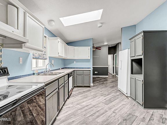 Rare 3 bedroom perimeter lot home with 500 sq ft enclosed Arizona Room. Too many upgrades to list. New ac/heat unit, new water heater, new laminate flooring throughout, new carpet in bedrooms, new paint and baseboards, new window seat with storage, new bench seating in kitchen with storage, 3 walk in closets, additional storage installed, bamboo blinds, all appliances including washer and dryer, 2 large skylights in kitchen and 10 solar tube lights, new turf in back, full canopy on back of house covering length of patio, workshop in back.