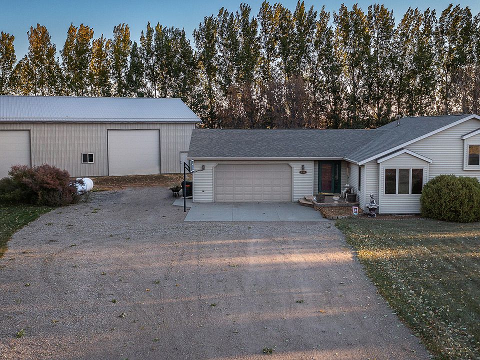 The 1st Public Open House is Scheduled for 12/03/2022 2:15PM - 3:30PM See You There! If you are looking for a nice place to call home and need garage space look no further! This multi level home and property has so much to offer! The first thing you may notice is the south facing home, the beautiful frontage, the many mature trees and the Huge Shop! Entering the home you will appreciate the bigger foyer area and the open feel on the main level. The kitchen has plenty of cabinets, stainless steel appliances and a breakfast bar. The dining area has a built-in and great access to the backyard and deck. The living room has vaulted ceilings and windows to help let in the natural light. Making your way upstairs you will notice the open staircase and railings. There are 2 good sized bedrooms and a full bath on the upper level. The lower level features another bedroom, a 3/4 bath with laundry, and a family room. The basement may provide options for 1 or 2 bedrooms if needed. Right now the basement has a great craft room and workshop/storage room. There is an attached heated double garage and don't forget the huge shop! This shop is 45X70, 2 big overhead doors, stubbed for concrete heat, spray foamed walls and a good start on the setup with a lot of thought in the design.