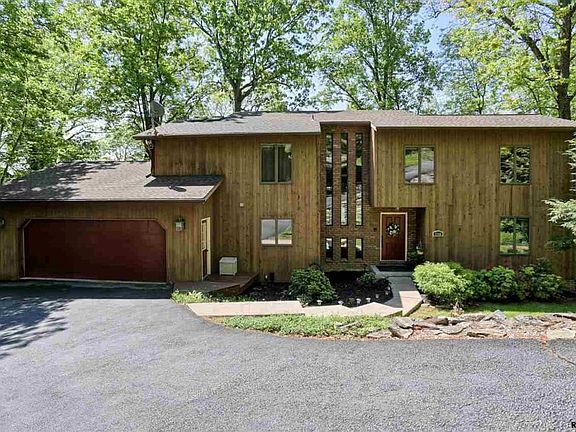 Escape the ordinary when you live in this rustic home with a contemporary flair. Entertain in style with your dream kitchen, large open floor plan, bar/game room, and multiple decks. Stunning views day and night from a natural setting. Super cool master bath w/walk in shower. Move in ready! 1st floor bdrm w/handicap accessible bath/shower. Close to parks, shopping, I 83 & Rt 30.