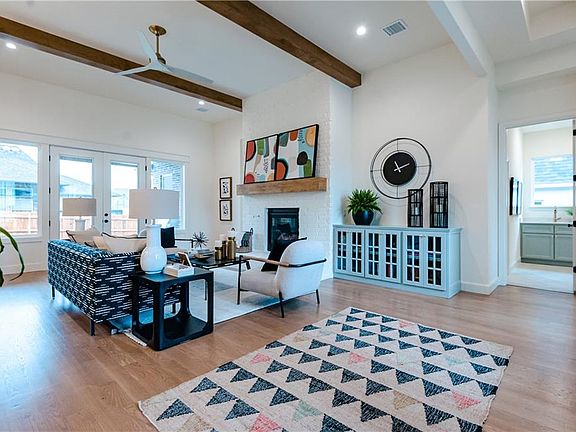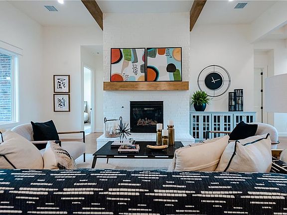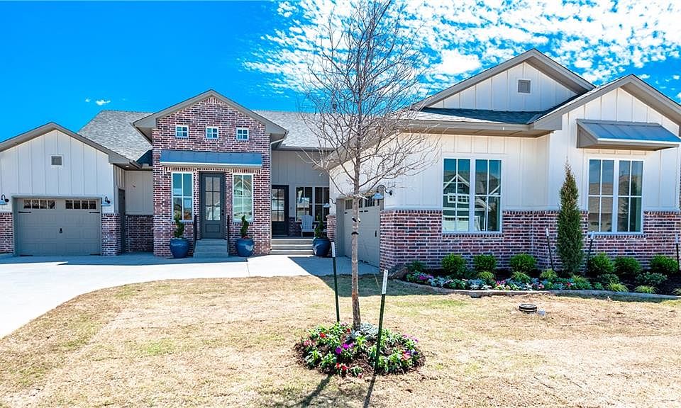 Living and relaxing are easy in this Modern Farmhouse in Town Square! Once you enter our brand new Drummond plan, you will be greeted by the stunning living room with a painted brick fireplace that flows into the kitchen and dining spaces. The guest bedrooms inside the main house have their own vanities and share an adorable blue-tiled tub/shower. The primary suite features two vanities separated by a free-standing tub, a large spa shower, and a closet that connects to the laundry room. The main house also has a study, a powder bath for guests, and a 3-car garage. Now for the most popular feature of this home - a CASITA! The casita on this home features its own entrance, a 4th bedroom, a closet, and a full bathroom. Home finishing early Summer. Town Square is Edmond's historically inspired community with a greenbelt, walking trails, a fishing pond, a clubhouse, resort-style pool, state-of-the-art fitness center, youth rec center, and playground for all the family fun!