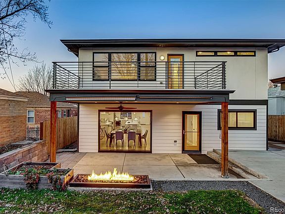 FANTASTIC MODERN HOME BUILT BY WORKSHOP, NORTH DENVER'S PREMIER BUILDER. THIS HOME BEAUTIFULLY COMBINES DESIGNER FINISHES AND MODERN CUSTOM FEATURES FITTING PERFECTLY INTO THE EXISTING NEIGHBORHOOD. THE MAIN LEVEL IS A WIDE-OPEN FLOOR PLAN SPOTLIGHTING A PRIVATE BEDROOM/OFFICE AND A FULL BATHROOM, A CUSTOM KITCHEN WITH AN EXTENSIVE ISLAND AND STAINLESS STEEL APPLIANCES. THE LIVING AREA/GREAT ROOM COMBINES A FABULOUS MIX OF CASUAL LIVING AND ENTERTAINMENT WITH A SPECTACULAR GLASS GARAGE DOOR WALL AND AN OUTDOOR GAS FIRE PIT TO ENJOY OUTDOOR EVENINGS. THE SECOND LEVEL FEATURES 3 BEDROOMS, FLEX SPACE/LOFT AND LAUNDRY ROOM. THERE IS ONE MINI MASTER WITH A SMALL COVERED BALCONY AND THE MASTER SUITE HAS ITS OWN LARGE PRIVATE DECK, 5 PIECE DESIGNER BATH AND A SPACIOUS WALK-IN CLOSET. FRESHLY PAINTED INTERIOR. MAIN FLOOR LIGHT CAN BE CONTROLED BY SMART PHONE, RING DOOR BELL AND THE THERMOSTAT IS WIFI CONNECTED.