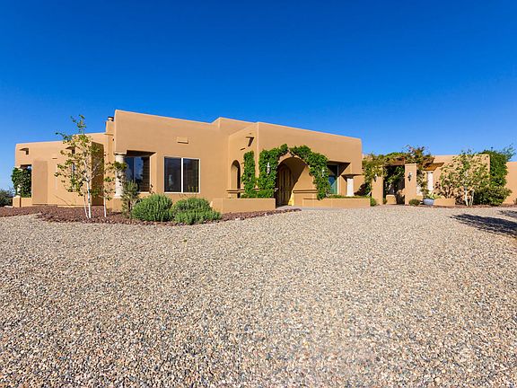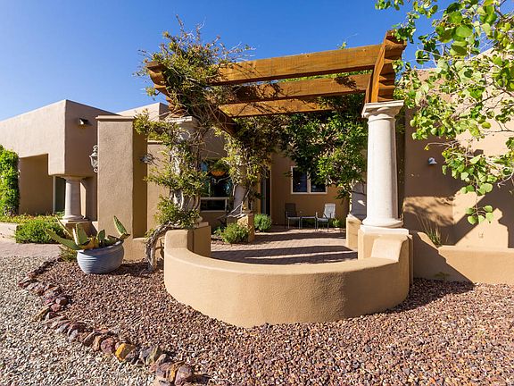 HORSE LOVER'S DREAM HOME! Highly upgraded Santa Fe style home with superior attention to detail and high-end finishes. 50' X 30' stucco/block barn with 4 stalls, offfice/tack room, wash area and hay storage. Two 24' X 80' paddocks with 5-rail and welded pipe fencing. Home features great room with soaring 14' ceiling, efficient pellet stove, Wolf range with grill, stainless steel appliances and granite counter tops. Enjoy spectacular view of Granite Mountain from the front pergola patio with trumpet vines & wisteria, or panoramic views of the San Francisco Peaks from the 800 sq. ft. rear patio that features a massive stone, wood-burning fireplace. Round pen does not convey. Home Warranty covers the well pump, too.