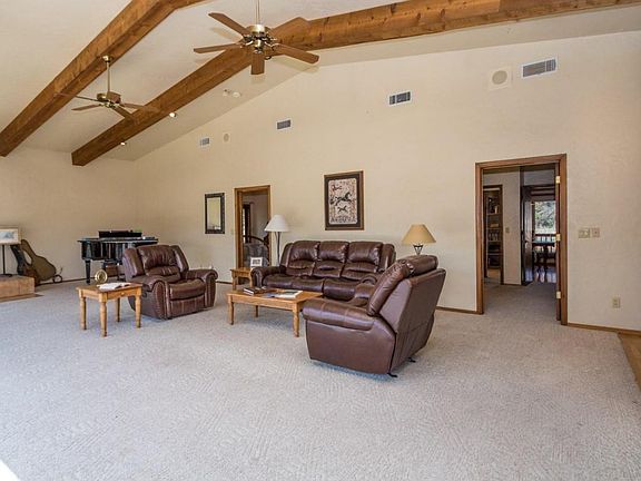 Back on the market-Contingency fell through. Country charm with many extras- Newly painted outside, brand new front entry door with side-lights. New dishwasher-June. Large entertaining kitchen with a HUGE butcher block island, Bonus room for TV, game room, or you-name-it! Sound system, Gigantic living area with gas stove/fireplace. Cute office/library that has a loft bed for sleeping or play. Large enough laundry room that you could even have an exercise equipment setup. Two dining areas in kitchen, or use for a seating area and one dining table. Nice entertaining size deck off kitchen/entry with great views. Used to be set up for horses, so it wouldn't take much to get it back into shape. There is a shelter and partial arena & a two car tandem carport. Plenty of room for a huge garage.