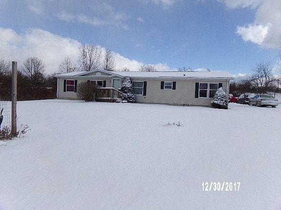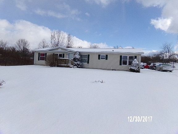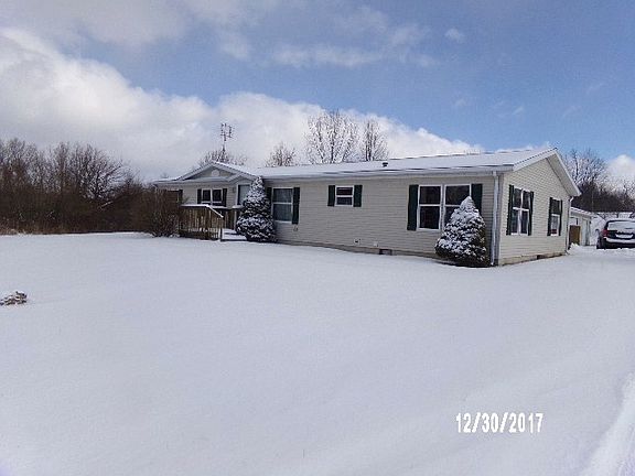 This is a manufactured home on a level 1.01 acre lot. The home features 4 bedrooms, 2 baths, living room, dining room, laundry room, and a kitchen with an abundance of cabinets and counter space. There is a nice deck on the back side of the home with nice country views. The home also features a 3 car detached garage. The property is located with easy access to Hwy 20 and I-69. Electric dryer, washer, dishwasher, microwave, LP gas stove, refrigerator, and water softener included in the sale.