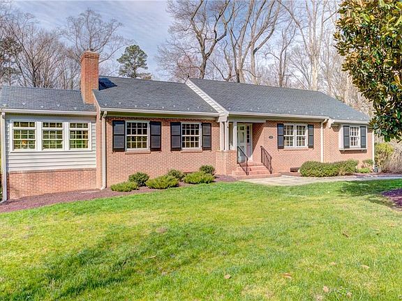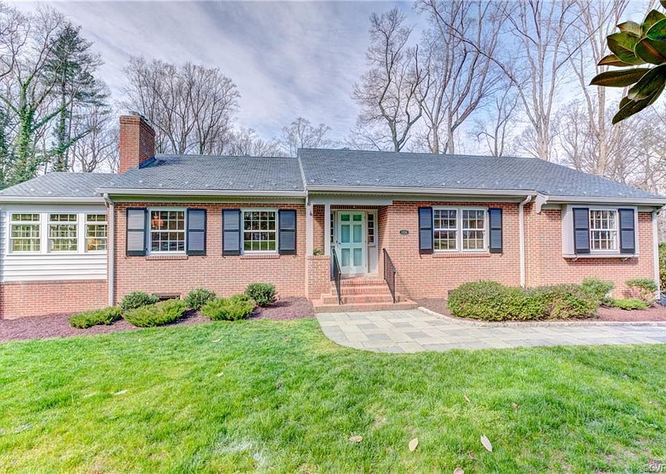 Beautiful, all brick ranch home in Stratford Hills! The main level boasts beautiful hardwood floors, a renovated kitchen with white cabinets, caesarstone countertops, backsplash and stainless steel appliances, living room with fireplace, dining room with crown and chair rail molding, carpeted sunroom with ceiling fan and walls of windows. The main level also provides a master bedroom with private bath, two additional bedrooms and renovated hall bathroom. The lower level provides an additional bedroom, full bath, family room with recessed lighting & fireplace, office with built-ins, drop zone with built-ins and laundry area. The lower level is rounded out with access to the garage. Outside you will find a spacious patio that is great for entertaining and a large fenced backyard. Notables: Whole House Generator, Slate Roof, Paved Driveway, Renovated Kitchen, Renovated Full Bath and more. Close proximity to shops, restaurants and the James River Park System!