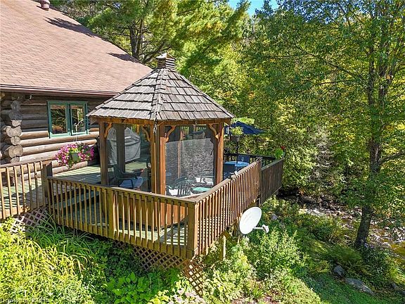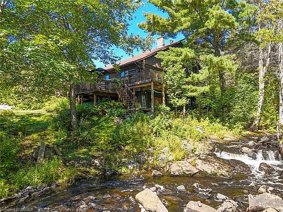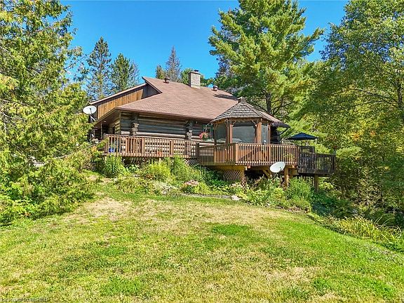 Get in before Christmas! Sellers are motivated and open to offers! Nestled amidst the serene beauty of nature, this exquisite Scandinavian hand-scribed 40' log home offers an unparalleled retreat on an expansive 146 acre estate. This picturesque abode has even starred in beloved Hallmark movies, adding a touch of cinematic magic to its already enchanting aura. This dream home was started in 1983 with the log construction. Over the years, the solid pine finishes were completed along with the hard wood floors and the towering hand laid stone fireplace. Several decks and gazebo were added along with the detached 1.5 garage in 2011, all on the shores of the picturesque North river. Since then, new shingles in 2014 and 2020, and a new submersible pump in the very unique artesian well. Over 10km of trails meander through the 146 acre property, some at elevations over 324m for snow shoeing and hiking. The home's interior features a loft with built-in queen size bed, ample closet space and a cozy tv viewing area. The main floor includes an additional 2 bedrooms, 4 piece bath and open concept living room, dining room and kitchen. The high ceiling walkout basement contains the laundry, 2 piece bath and cold room. The drilled artesian well is a fantastic feature offering fresh water. Few can boast of such a spectacular property! Whether you're an avid hiker, an enthusiastic mountain biker or simply enjoy a leisurely stroll, this property offers endless opportunities to explore and connect with nature. Wildlife sightings are common, adding to the sense of being one with the great outdoors. This home is a rare gem. Don't wait! Have a look today!