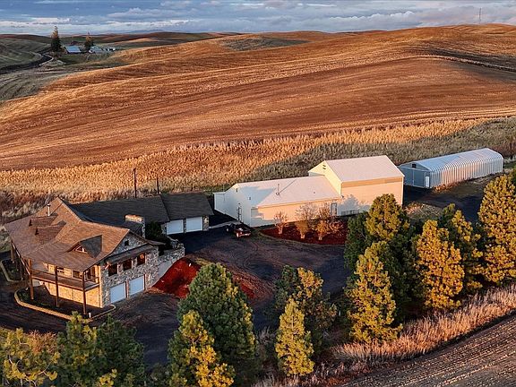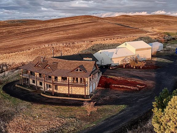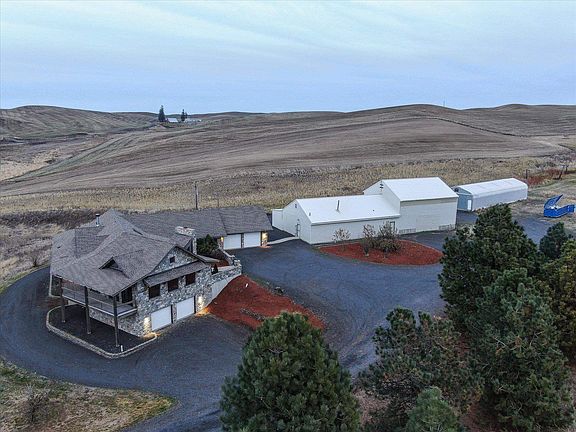 What an amazing property. Only 40 min from Spokane, but you feel like no one is around you! Over 6000 square feet of amazing architecture. Lots of woodwork, angles and soaring cathedral ceilings. An incredible trophy room with huge fireplace and massive windows to enjoy the view from. A sitting room is between the trophy room and the gigantic great room and kitchen. What a place for family gatherings! A jenn air range, convection and regular oven are part of this chef's kitchen. Look at the countertop space and huge pantry. The master ensuite has it's own door to the lengthy trx deck, where u can enjoy the rolling hill views. 3 closets including a walkin and 3 piece toilet closet along with a garden tub! 1 more main floor bedroom and a 1/2 bath with main floor laundry. Downstairs, 2 more daylight bedrooms a large family room, a commercial kitchen area, walkin safe and entrance to 1 of 2 attached garages. 2 huge shops, a 40x80 w/ 2 offices and bath, a 25x80 storage shed. Did I mention the gun range and pond!