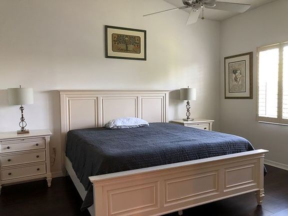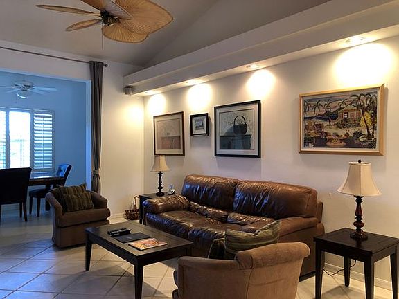 One Month minimum, Nine Months rental minimum as of August 2023. Turnkey 2 bedroom, 2 bathroom villa on the second floor, tile flooring in the living area and wood laminate flooring in the bedrooms. Furnished with a King bed in the primary bedroom suite, queen bed in the guest bedroom. Enclosed office/study/dining area adjacent to the living room space overlooking the community pond. Brand new living room furniture. Rate includes electric, water, sewer, garbage, pest control, WiFi internet [400 mbps] and basic cable. Located within a short distance to community pool and spa, community fitness room and IMG facilities. Listed rate reflects 9+ months lease. Leasing for $4,250 for one [1] month - [5] five months [plus applicable short term taxes and fees].