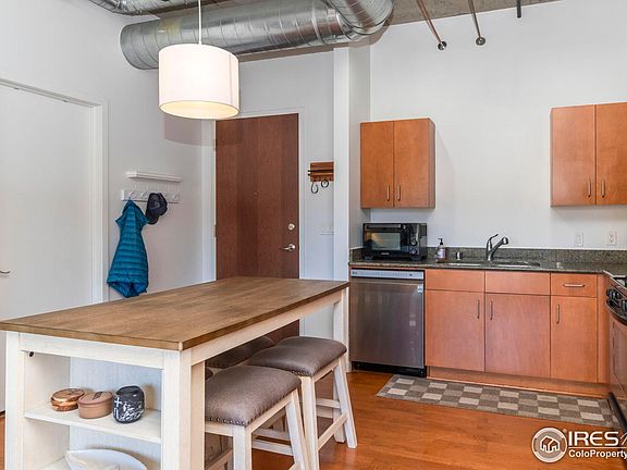 Sunny & modern south-facing 3rd floor Peloton unit with balcony overlooking the quiet interior courtyard. Enjoy easy one level living w/ elevator access in this loft style condo at the highly desirable Peloton w/ Boulder's best amenities - rooftop pool, hot tubs, firepit, fitness center, rec room, movie theatre, dog park and outstanding on-site restaurants including Basta, Naked Lunch & Dry Storage. Spacious kitchen featuring gas oven/range, granite counters & tons of cabinet space + room for a dining table or kitchen island w/ seating. Living room w/ high ceilings, new carpet and fresh paint opens to a balcony w/ space for a dining table and a grill with it's own gas line. The bedroom area is well defined and accommodates a king size bed. In addition, there is a spacious full bathroom and a huge walk-in closet. The large laundry/utility room is oversized with abundant storage space. Elevator access to an underground parking space completes the package. This move-in ready unit is incredibly convenient in so many ways including the stellar location close to CU and all that Boulder has to offer. The Peloton allows rentals for a minimum of 30 days and this unit would make a perfect part time residence and medium term rental. HOA fee includes water/sewer and gas (hot water, heat and gas oven/range).