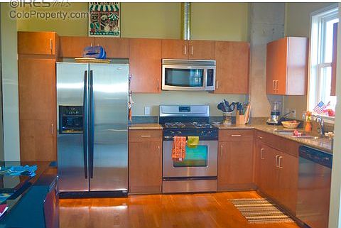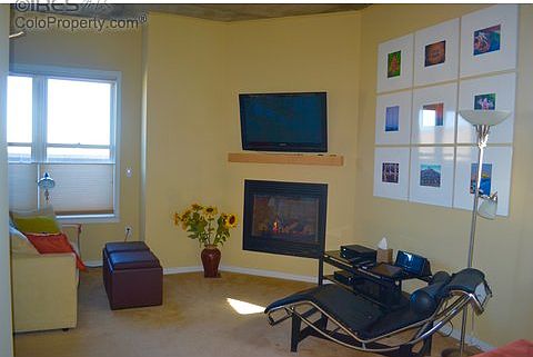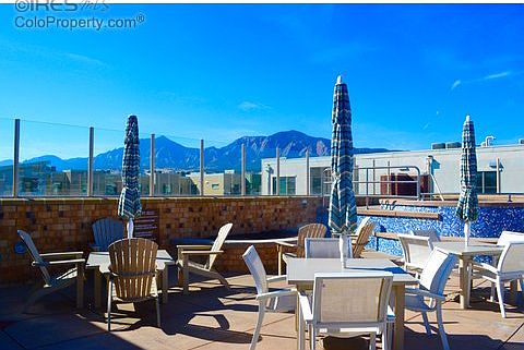Coveted Peloton condo. Best loft floorpan at the Peloton. Light and bright. Mountain views, fireplace, large outside balcony (7x14ft) w/spectacular views west, north & east. L-shaped w/sleeping alcove. Quiet corner away from Arapahoe. Lots of windows and cross ventilation. Low HOA with 2 eco passes included. Also included, rooftop swimming with views of all of Boulder mountains including Flatirons, fabulous gym, community rm and movie theater. Close to shopping and dining. High "walk score".