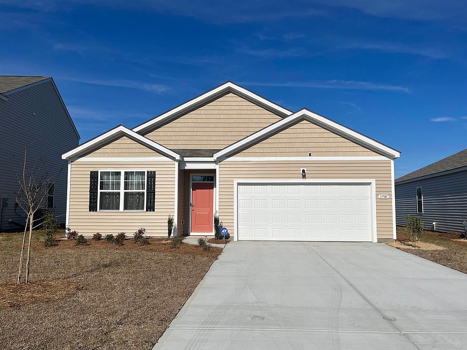New construction in the North Myrtle Beach area. Perfect location 10 minutes to Ocean Drive and Windy Hill Beaches. The Cali offers a beautiful and functional ranch design with a spacious family room that expands to a casual dining area. The kitchen is the highlight of this home with plenty of room for everyone to gather around the open kitchen island. The split bedroom floorplan creates a private primary bedroom featuring a large walk-in closet and spacious bathroom. Three additional bedrooms, each with large closets for additional storage, offer many possibilities for even a den or home office space. You will enjoy evenings on the back porch overlooking the pond! All of our homes include D.R. Horton's Home is Connected® package, an industry leading suite of smart home products that keeps homeowners connected with the people and place they value the most. The technology allows homeowners to monitor and control their home from the couch or across the globe. *Photos are of a similar Cali floorplan. (Home and community information, including pricing, included features, terms, availability and amenities, are subject to change prior to sale at any time without notice or obligation. Square footages are approximate. Pictures, photographs, colors, features, and sizes are for illustration purposes only and will vary from the homes as built. Equal housing opportunity builder.)