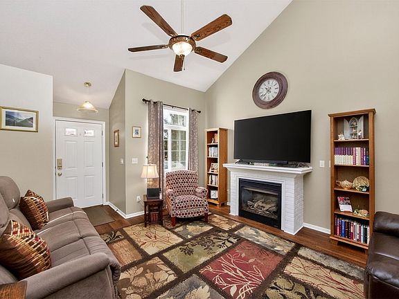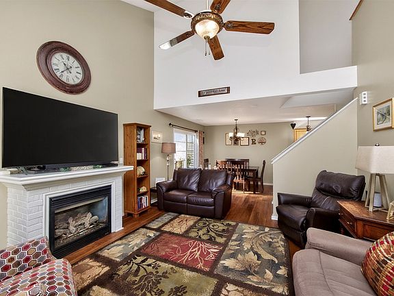 This end-unit townhome in Brook Run offers desirable southern exposure and one of the best locations in the community: positioned on the edge of the development and backing to single-family homes for added privacy. Inside, the living room welcomes you with a cozy fireplace as the focal point and flows seamlessly into the dining area and kitchen. A convenient half bath and attached two-car garage are just off the kitchen. Upstairs you will find two bedrooms, a flexible loft ideal for a home office or additional living space, and second-floor laundry for everyday ease. The fully renovated bathroom features a tiled shower and dual sinks. Additional updates include LVP flooring throughout the main level and stainless steel appliances (microwave new Oct 25 and dishwasher replaced within the past year). Southeast Polk Schools