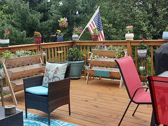 Welcome to this spacious end of group brick front home. This home has open concept with living room and dining room bump outs for extra space and lighting. Walk into your foyer that has a half bath then sunken living room with wood burning fireplace for those cozy evenings. Next is your spacious dining area with built in bookshelves, ceiling fan and chair molding. The first floor has newer luxury vinyl plank flooring. The eat in kitchen has plenty of counter and cabinet space with stainless steel appliances and ceiling fan. Plenty of room for a kitchen table. Sliders lead from the kitchen to a large 1 year old deck that has partial retractable awning. It's great for sitting outside and relaxing. The Upper Level has a primary bedroom with a full bath that was redone with ceramic tile, ceramic walls and vanity. There are two additional bedrooms and another full bath that has also been redone. The lower level has a nice size family room.. There is a walk out to the back that has a newer shed. There is a large utility room that has washer and dryer that are a couple of years old, plenty of shelving and a rough in for a full bath. The front steps, sidewalk and porch were also replaced along with the railings. Ring Doorbell Included.