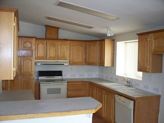 HUD Home. Great home on large corner lot! Large living & dining areas. Kitchen features laminate oak floors, range/oven, dishwasher & raised oak cabinets. Master has split dual vanity with large, corner jetted tub & sep shower. Amazing back yard w/large covered patio, storage shed, horseshoe pits, fully fenced w/full sprinklers plus cement curbing! Disclosures: Dbl-wide manuf home on foundation. Manuf home missing affixed HUD
