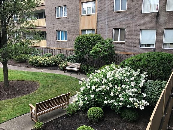 Rare 2 Elevator Condominium in the Heart of Cleveland Hts with M-F manager present and minutes to University Circle and Downtown Destinations. Situated on the first floor, the views from the condo of the rear Courtyard are spectacular from the Patio/Deck off the Living Room and eating area of the Kitchen. Newer neutral carpeting and paint Throughout. The Bright and Cheerful Kitchen has a newer Cook Top and Double Ovens. There is a Built-in Wet bar, for entertaining. The second Bedroom has wall to wall built-ins. The in Suite Washer and Dryer are newer and included. The maintenance fee includes gas, basic cable, water/sewer, exterior maintenance, landscaping, snow removal and Professional Management. There is a Party Room, Guest Suite for your visitors overnight stays ($50/night), Library, Game Room too! The garage is attached, heated and has a designated car wash bay. Come see if this is your new home!