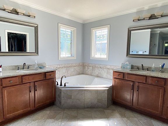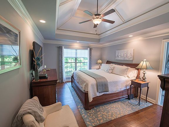 Please contact, Dan Calloway at 502-888-7950 if interested: My wife and I are offering a 4 bedroom, 3 full-bath walkout ranch with a split-bedroom floorplan with an estimated 3000+ Sq. Ft. total finished living space. First floor features the Master Bedroom with en suite which has two vanities and two walk-in closets (one closet is plumbed and wired for washer and dryer as optional upstairs laundry room should that be your preference). It also has a separate water closet, linen closet, separate shower and whirlpool tub. Master bath also takes advantage of space saving pocket doors. The kitchen has custom cabinetry with granite countertops and is furnished with KitchenAid stainless steel appliances featuring an induction cooktop with oven, dishwasher, refrigerator, and microwave. There is an elevated breakfast bar along with a separate eat-in area adjacent to the large outdoor deck. Just off the kitchen is a mud room with built-in bench, hooks and shelves just inside of the 3-car garage. The living room has a built-in entertainment center with drawers and bookshelves as well as floor to ceiling windows offering expansive views of the woods and creek beyond your backyard, providing a private and peaceful home environment. The separate dining room area is adorned with a coffered ceiling and wainscoting. The second bathroom and the other two upstairs bedrooms are situated on either side of the stairs leading to the finished walk-out basement with 9 foot ceilings. As you descend the staircase, the lower level opens up to a large finished family room with a built-in entertainment center flanked by custom bookcases. Built-in rear surround sound speakers in the ceiling are pre-installed for your movie and music enjoyment. The lower level also features the fourth bedroom, the third full bathroom as well as a wet bar with a built-in mini fridge. There is also a potential office nook with natural light, a large utility closet, and a large laundry room with Whirlpool front-loader washer and dryer to stay. The downstairs laundry could easily be converted to be a 5th bedroom if desired. Ample storage is available in the 544 sq. ft. of unfinished space with existing shelving to stay. Just outside the doors of the walk-out lower level is a large concrete patio with firepit. Covered deck above also provides a shady and peaceful seating area below. In addition, the lower level has a 9x18 foot utility garage that is accessible to the basement. This garage is useful for storing the lawn and garden tools or perhaps for a small workshop. Other features include custom window treatments with remote control for the Master Bedroom and stairwell window, recessed lighting throughout house, Wi-Fi enabled timer-controlled soffit lighting, Wired for ethernet and cable, Honeywell Smart Thermostat, Ring Doorbell, alarm system, Rubbermaid Fasttrack rails with a variety of hanging and storage attachments for the garage, 9 foot Ceilings in the finished walkout basement, Lower level also has new carpet. Water softener and an Ecco Pure whole house water filtration system, lawn sprinkler system and newly updated landscaping, gutter guards and buried downspouts, upscale neighborhood offering vistas of lakes and woods, Clubhouse and neighborhood swimming pool, Private wooded cul-de-sac.